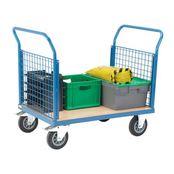 Magazzino due maniglie pesante rotolamento rete metallica piattaforma carrello con i lati