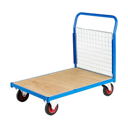 คลังสินค้าไม้อัดดาดฟ้าโลหะมือถือแบน4ล้อแผ่นแผงรถเข็น